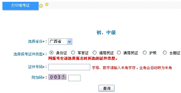 廣西省2013年中級會計職稱考試準(zhǔn)考證打印入口