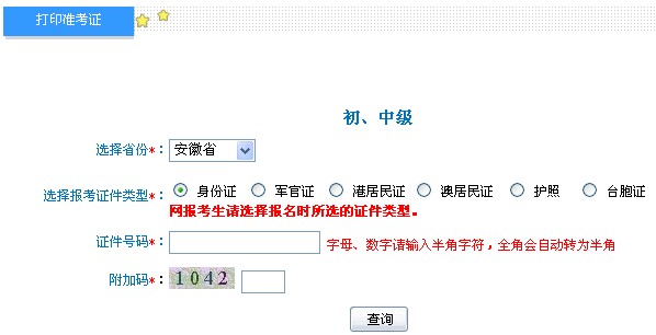 安徽2013年初級(jí)會(huì)計(jì)職稱筆試考試準(zhǔn)考證打印入口