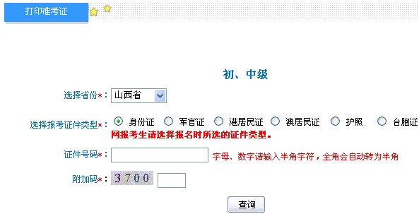 山西省2013年初級(jí)會(huì)計(jì)職稱考試準(zhǔn)考證打印入口
