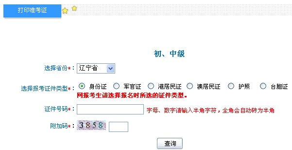 遼寧省2013年中級會計職稱考試準考證打印入口