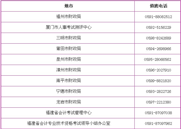 福建省2013年初級(jí)會(huì)計(jì)職稱考試筆試考試值班電話