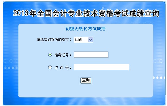 2013年山西初級會計職稱無紙化考試成績查詢?nèi)肟?/h1>