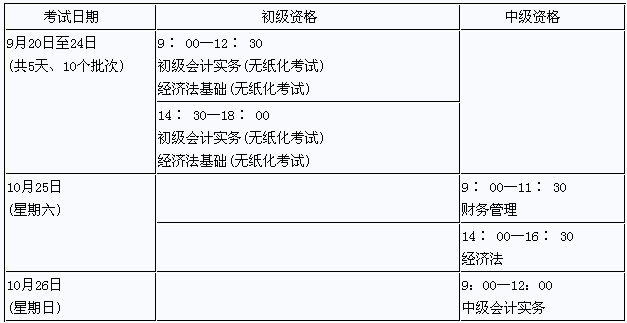初級資格無紙化考試于9月20日―24日舉行(共5天,10個批次,具體考試批次和時間以準(zhǔn)考證注明時間為準(zhǔn))。參加初級資格考試的考生,在一個考試年度內(nèi)只能報名參加一次考試。初級資格的《初級會計實務(wù)》科目考試時間為2個小時,《經(jīng)濟(jì)法基礎(chǔ)》科目的考試時間為1.5小時,兩個科目考試時間共計3.5小時;兩個科目連續(xù)考試,分別計算考試成績。