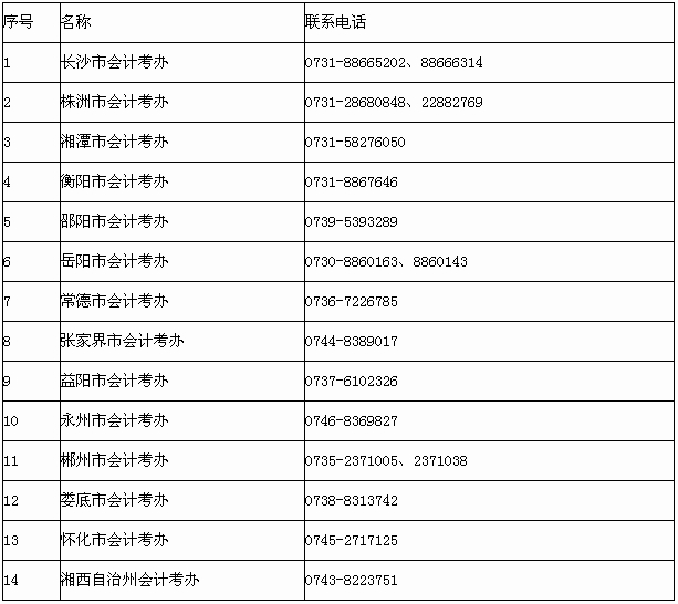 2014年湖南初級會計(jì)職稱考試報(bào)名點(diǎn)聯(lián)系電話匯總