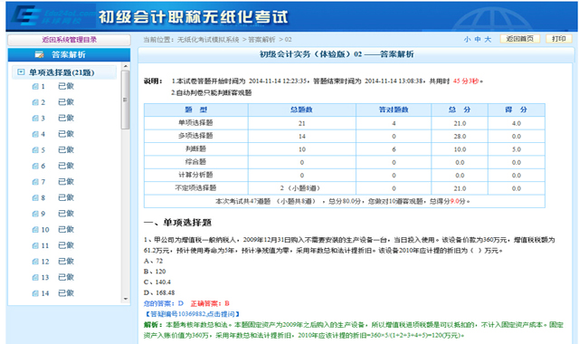 2015年初級會計職稱無紙化考試全真機考模擬系統(tǒng)
