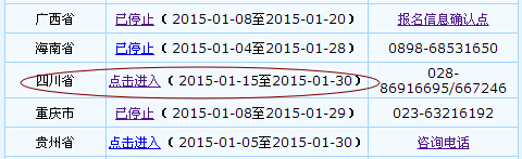 2015年1月15日至1月30日為考生網(wǎng)上報(bào)名、網(wǎng)上繳費(fèi)時(shí)間。
