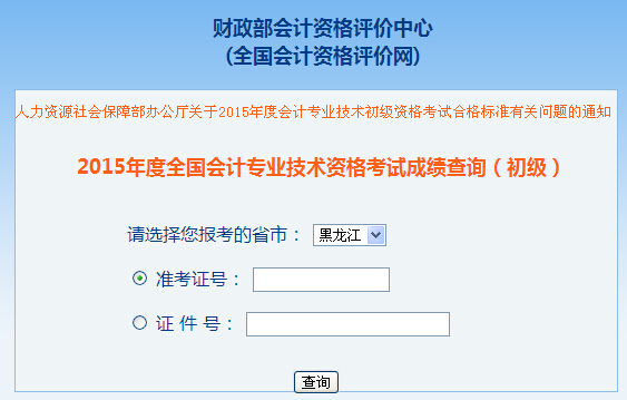 黑龍江2015年初級(jí)會(huì)計(jì)職稱考試成績(jī)查詢?nèi)肟?/h1>