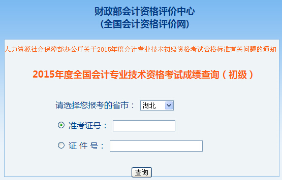 湖北2015年初級會計職稱成績查詢?nèi)肟?/h1>