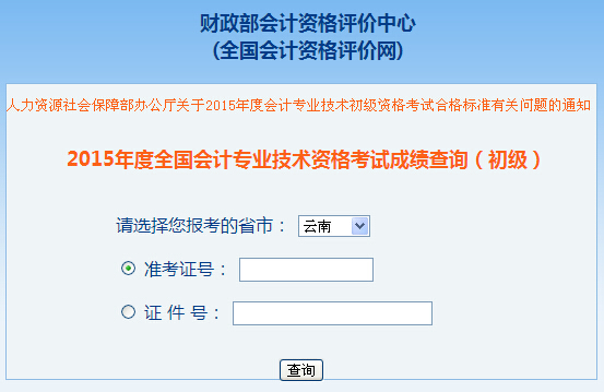 云南2015年初級會計職稱成績查詢?nèi)肟?/h1>