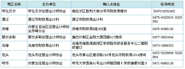 內(nèi)蒙古2013年注冊(cè)會(huì)計(jì)師資格審核確認(rèn)點(diǎn)地址及電話