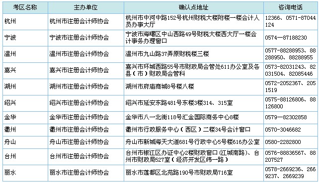 浙江省2013年注冊(cè)會(huì)計(jì)師資格審核確認(rèn)點(diǎn)地址及電話