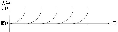 (4)折價(jià)發(fā)行的分期付息債券:整體呈上升趨勢(shì),在兩個(gè)付息日之間逐漸上升。