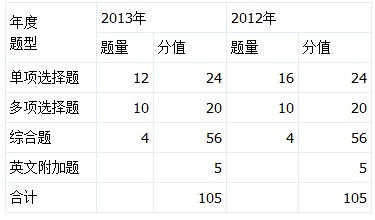 機(jī)考形勢(shì)下,總體難度在下降。下面為近兩年題型題量分析及題目類型的特點(diǎn)。