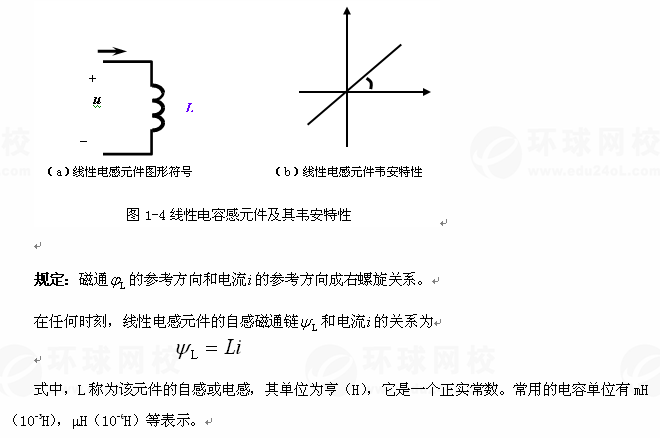 從圖1-4(b)中,可以看出線性電gan元件的磁通鏈、電流關(guān)系在 坐標(biāo)軸上,是一條過原點(diǎn)的直線,被稱為電感的韋安特性。