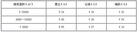 第2條 商店建筑的營業(yè)、倉儲和輔助三部分建筑面積分配比例可參照表3.1.2的規(guī)定。