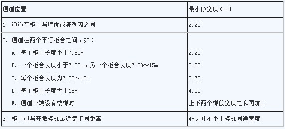 普通營業(yè)廳內(nèi)通道最小凈寬度 表3.2.3