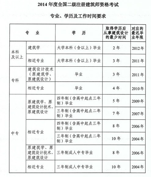 2014二級建筑師考試專業(yè)、學(xué)歷及工作時(shí)間要求