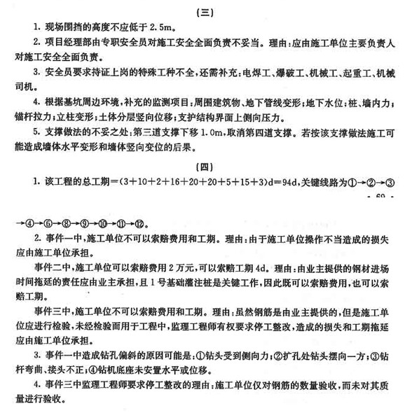 就將其用于鋼筋籠的加工;監(jiān)理工程師發(fā)現(xiàn)后,要求停工整改,造成延誤工期3 天,經(jīng)濟(jì)損