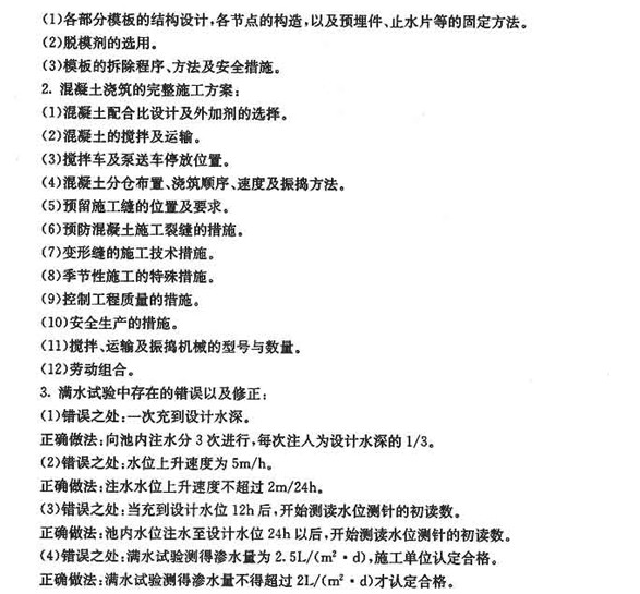 施工單位制定了池體混凝土澆筑的施工方案,包括:①混凝土的攪拌及運(yùn)輸;②混凝土