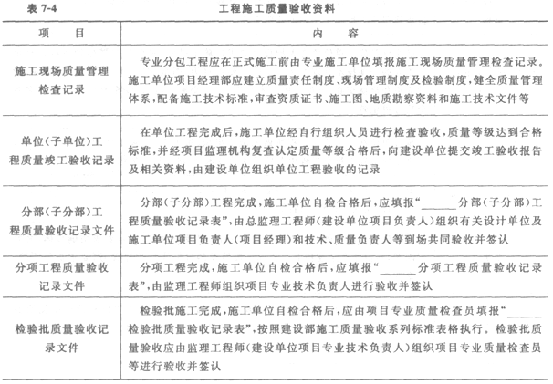 4.工程施工質(zhì)量驗(yàn)收資料(表7-4)