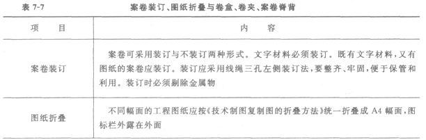 8.案卷裝訂、圖紙折疊與卷盒、卷夾、案卷脊背(表7―7)