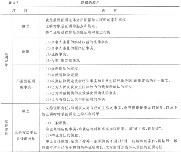 3.證據(jù)的應(yīng)用(表3-7)