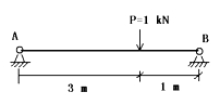 但這道題也可不必計算,由分析得答案。因支座A、B反力總和為1 kN,故RA不可能為1kN;又由荷載P不作用于跨中,RA與RB不應相等,故RA不可能是1/2 kN.剩下3/4與1/4中挑一個,顯然RA離P作用點較遠,受力應小一點,故只有1/4是正確的,答案應為D.