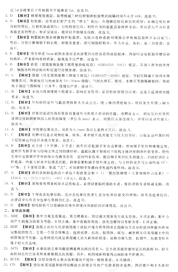 2013年二級(jí)建造師《建筑工程》押題卷一(8)