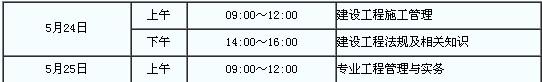 2014年度二級建造師執(zhí)業(yè)資格考試定于2014年5月24日、25日進行,具體時間及科目如下: