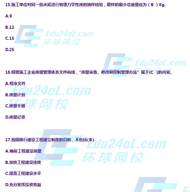 2014二級(jí)建造師施工管理真題(15-17)