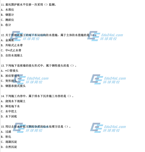 2014二級建造師市政實務(wù)真題(11-15)