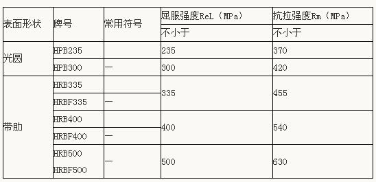 注:熱軋帶肋鋼筋牌號(hào)中,HRB屬于普通熱軋鋼筋,HRBF屬于細(xì)晶粒熱軋鋼筋。