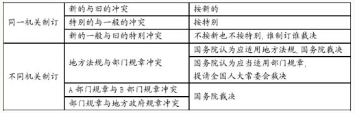 2.地方性法規(guī)與部門規(guī)章不一致:由國務院提出意見,適用地方性法規(guī)的,選擇地方性法規(guī);適用部門規(guī)章的,提請全國人大常委裁決
