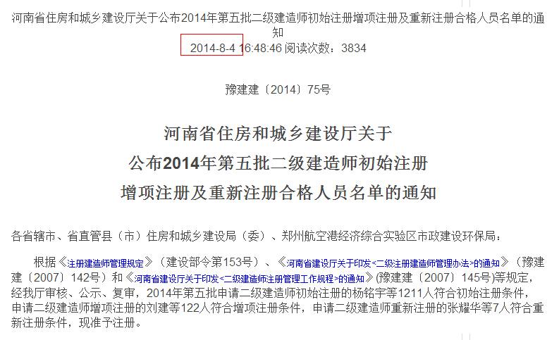 河南省還是在正常發(fā)布二建人員的注冊信息,只不過,換了個地方,在“工程建設信息網(wǎng)”公示了。