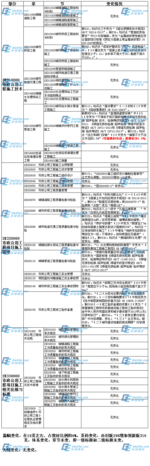 2015年二級建造師新版教材已經(jīng)發(fā)布,環(huán)球網(wǎng)校二級建造師頻道集結(jié)權(quán)威老師作出以下2015年二級建造師《市政公用工程管理與實務》新舊教材對比: