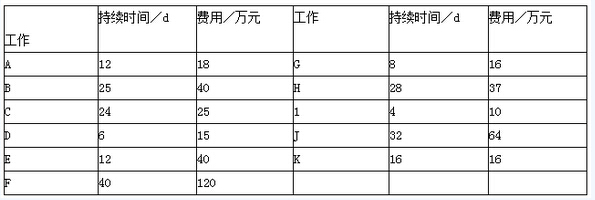 32 某施工單位編制的某工程網(wǎng)絡(luò)圖,如圖2-11所示,網(wǎng)絡(luò)進度計劃原始方案各工作的持續(xù)時間和估計費用,見下表。