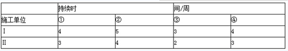 施工分為Ⅰ、Ⅱ、Ⅲ、Ⅳ、Ⅴ5個部分,Ⅰ、Ⅱ作業(yè)時間見下表,Ⅲ、Ⅳ、Ⅴ作業(yè)均為1周。