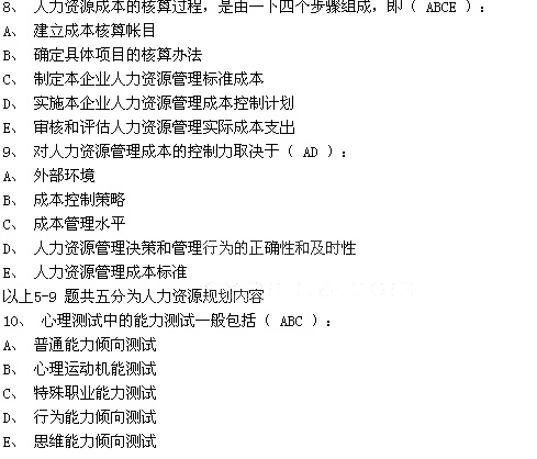 以上10-17 題共八分為招聘與配置內(nèi)容