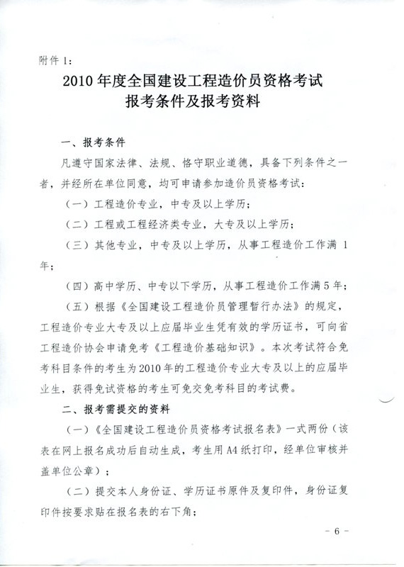 2010年全國造價(jià)員考試報(bào)考條件及報(bào)考資料