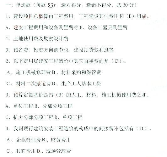 2010年全國造價員土建工程考前沖刺試卷一(1)