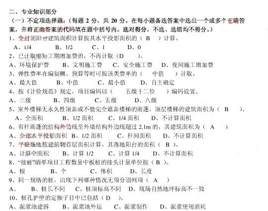 2010年全國(guó)造價(jià)員建筑工程考前沖刺試卷二(2)
