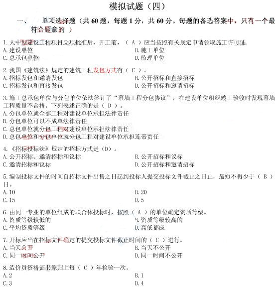 2010年造價員考試考前沖刺模擬試卷四(1)