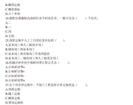 2010年全國造價員計價基礎考前沖刺試卷一(4)