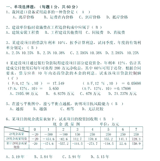 2006年衢州造價員基礎(chǔ)真題及答案(1)