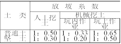 (一)土類為單一土質(zhì)時(shí),普通土開挖深度大于1.2m、堅(jiān)土開挖深度大于1.7m,允許放坡。