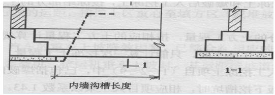 內墻溝槽,按圖示基礎(含墊層)底面之間凈長度計算;
