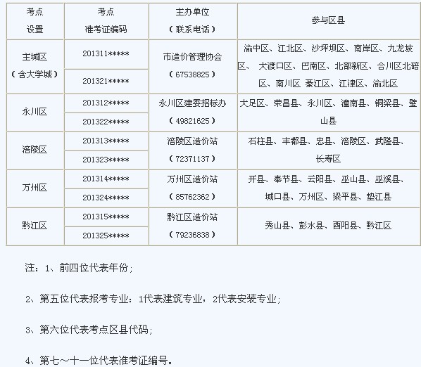 各區(qū)、縣全國建設工程造價員考試考點安排表