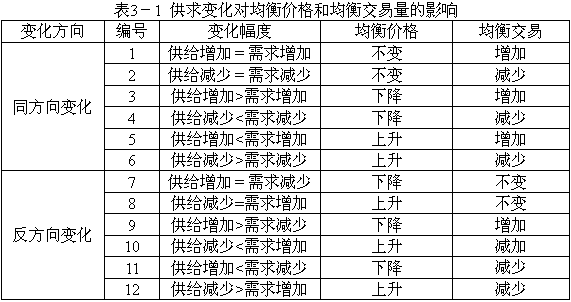 總的來講,房地產(chǎn)的價格與其需求呈正相關(guān),與其供給呈負(fù)相關(guān):供給一定,需求增加,則價格上升,需求減少,則價格下降;需求一定,供給增加,則價格下降,供給減少,則價格上升。如果需求和供給同時發(fā)生變化,均衡價格和均衡交易量也會發(fā)生變化。需求和供給的同時變化,有同方向變化(需求和供給均增加或均減少)和反方向變化(需求增加而供給減少,或需求減少而供給增加)、變動幅度不同 (需求的增減大于或小于供給的增減)等情況,因而存在著多種變化組合,它們對均衡價格和均衡交易量的影響歸納為表 3-1。表3-1 供求變化對均衡價格和均衡交易量的影響驗(yàn)證,參加補(bǔ)圖3-3所示。