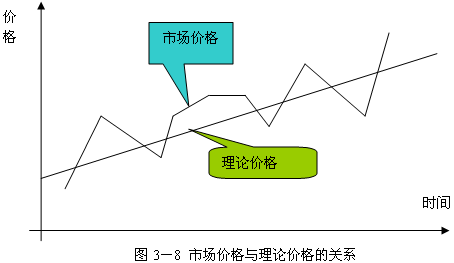 一般地說,成交價(jià)格圍繞著市場價(jià)格而上下波動(dòng),市場價(jià)格又圍繞著理論價(jià)格而上下波動(dòng)(即小波動(dòng)圍繞著大波動(dòng)而上下波動(dòng),大波動(dòng)又圍繞著更大的波動(dòng)而上下波動(dòng)), 它們之間的關(guān)系可見圖 3-8 。
