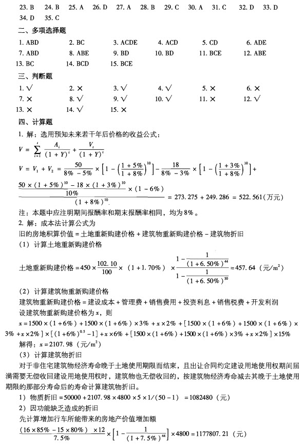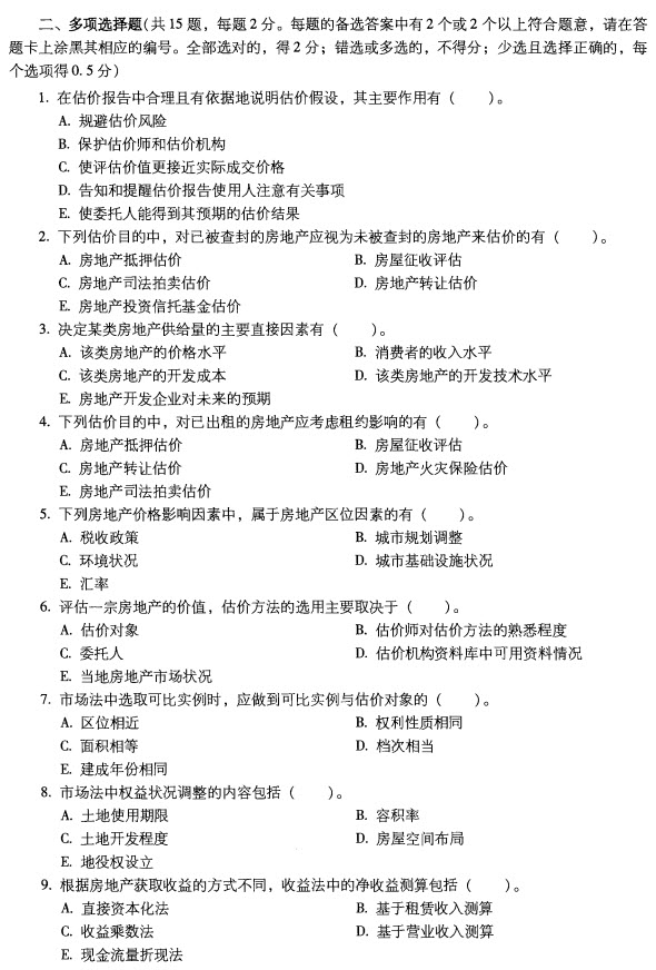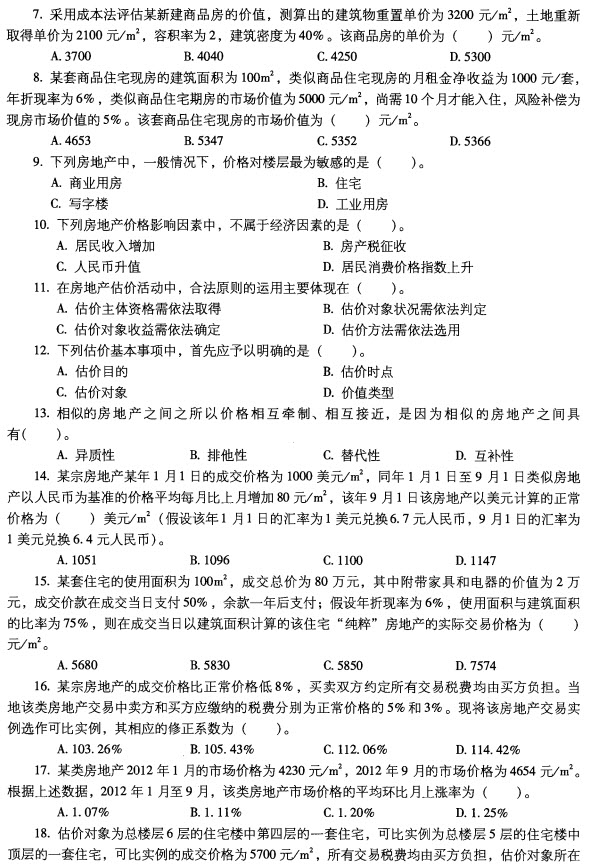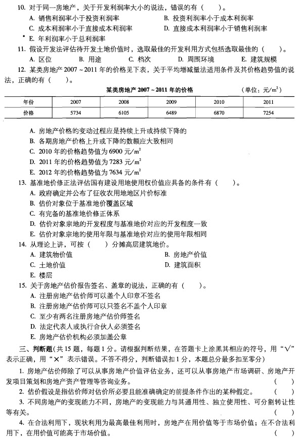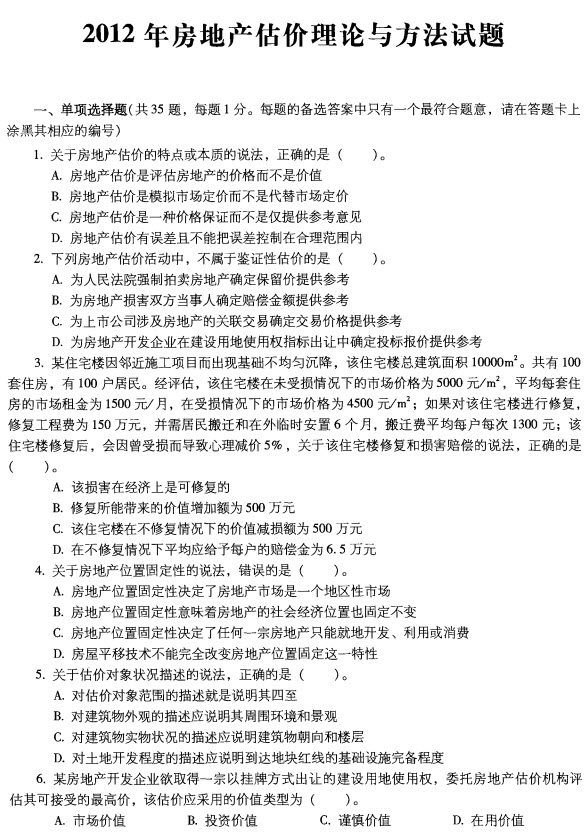 2012年房地產估價師《理論與方法》真題(完整版)